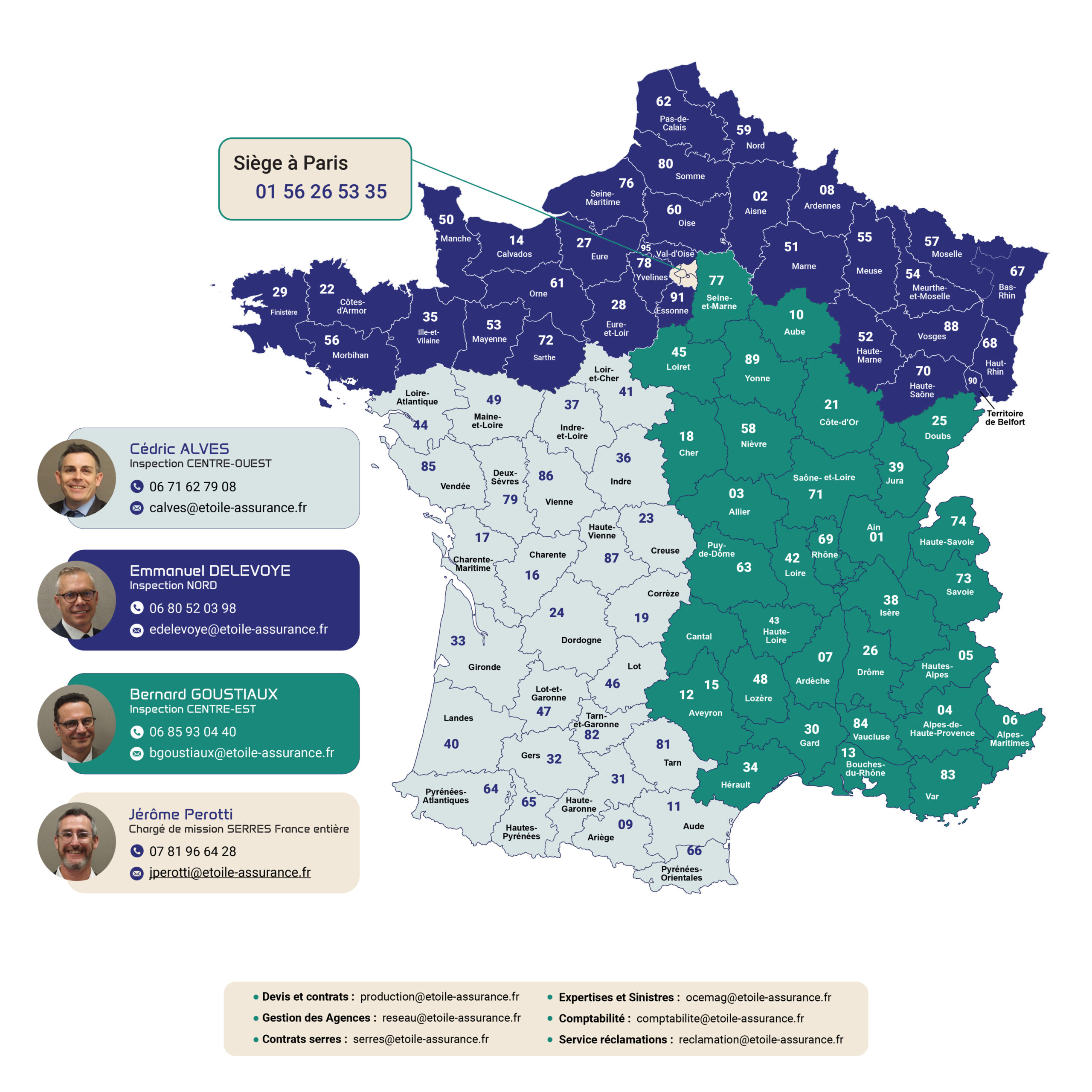 L’ETOILE pratique une politique de proximité, entretenue par des Inspecteurs régionaux responsables sur le terrain du bon fonctionnement commercial, technique et administratif, en liaison permanente avec la Direction générale.